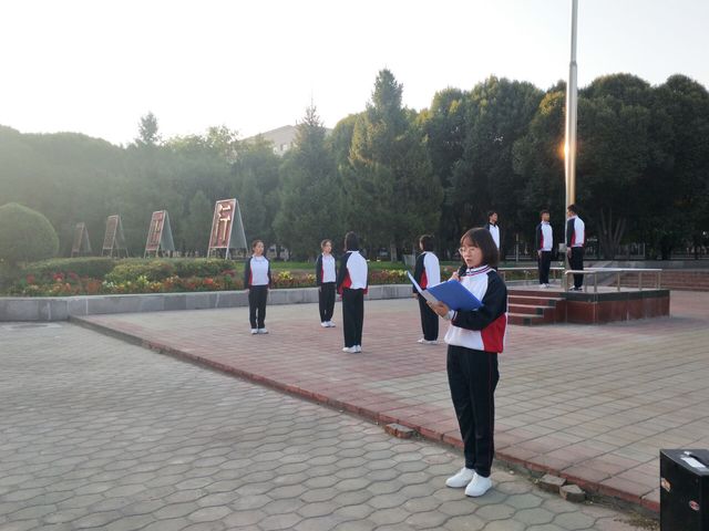 清晨像露珠一样新鲜,天空发出柔和的光芒。早上刚过八点,已经有同学站在集会地点等待开始,八点半后,同学们已经排好队列。经过院自律委同学清点人数后,主持人宣布升旗仪式正式开始。