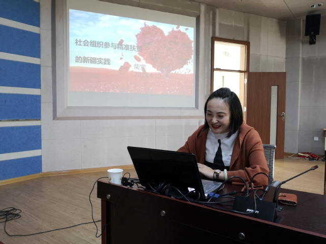 柴雪老师的选题研究基于多次深入南疆的调研,她用丰富的数据、严谨的理论分析、生动的语言和案例为在座师生呈现了一场有情怀的学术报告。柴雪老师从扶贫背景谈起,系统讲述了扶贫模式、扶贫主体、扶贫核心以及扶贫内容的转变,通过对“四川海惠助贫服务中心”等援疆项目近十年援助成效的梳理和评估,分析了社会组织参与精准扶贫的优势:经济效益、能力提升、扶贫模式多元化、受助者变为施助者,并阐述了社会组织参与精准扶贫的必要性。