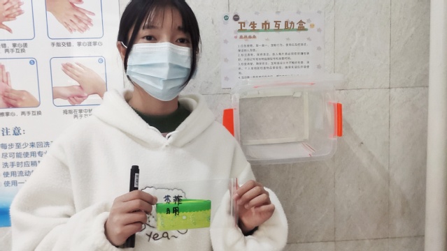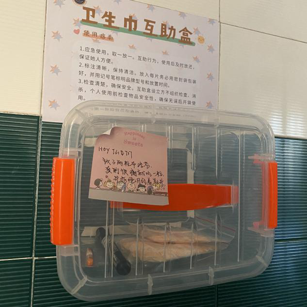 据悉,本次活动以“石大出发,予你同行”为主题,秉承“助人自助”的价值理念,采用“用一还一”和“互帮互助”的形式,在大学教学区域的女卫生间安装卫生巾互助盒,为师生互帮互助搭建平台,供急需的师生应急使用。目前,已完成博学楼、会四部分卫生间内安装。互助盒为带盖的pvc塑料盒,为保障安全卫生,专门为每个盒子配备了马克笔和塑封袋,放入时需密封、标记品牌和时间。