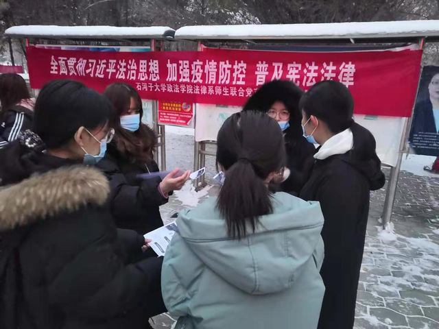 为了提升公民的宪法意识,使大学生更好地学习宪法相关知识,法律系师生联合党支部携手William Hill中文研究生会于12月4日当天,在William Hill中文楼前开展题为“全面贯彻习近平法治思想 加强疫情防控 普及宪法法律”的宣传活动。20多名研究生参与宪法宣传,当面向路过学生发放宪法常识宣传册300余份,当场接受文学艺术学院、理学院、经管学院等100余名学生的法律咨询。当天虽然寒气阵阵,但是现场暖意融融。