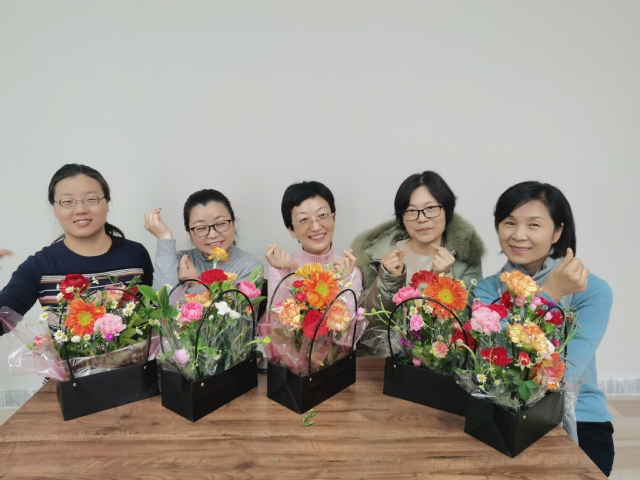 学院各系、办的女老师们积极参与,通过插花制作和花艺展示,共同感受插花快乐,抒发高雅情怀。
