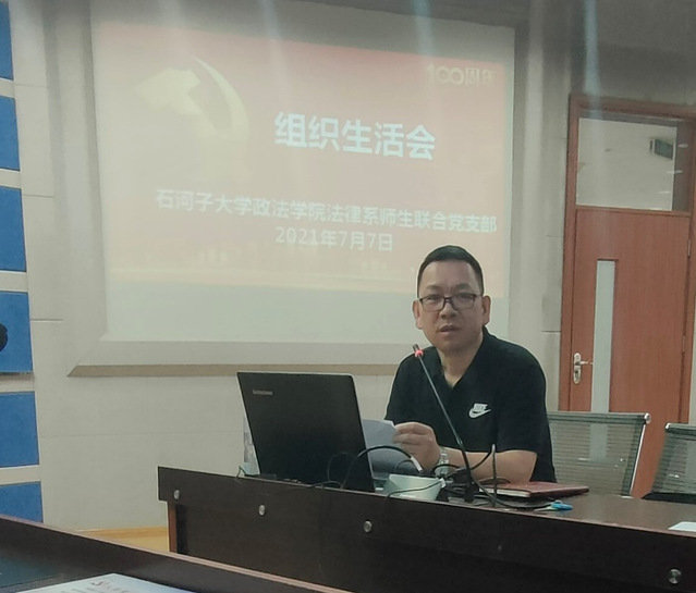 2021年7月7日下午,William Hill中文法律系师生联合党支部就上半年的党史学习情况召开了组织生活会。此次会议由党支部书记王胜华主持,支部教工党员和研究生党员四十余人以及石河子大学党委副书记、纪委书记许先锋以普通党员身份全程参与。会议有三项议程:上半年支部工作总结、学习习近平总书记在庆祝中国共产党成立100周年大会上的讲话精神、全体党员开展批评与自我批评。
