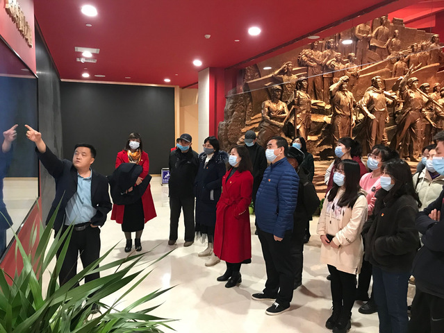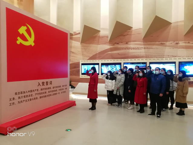 上完党课,各位党员们缓缓进入军垦博物馆,了解这座城市的历史与发展。最后全体党员在党旗前重温了入党誓词,机关师生联合党支部书记冯洁领誓。