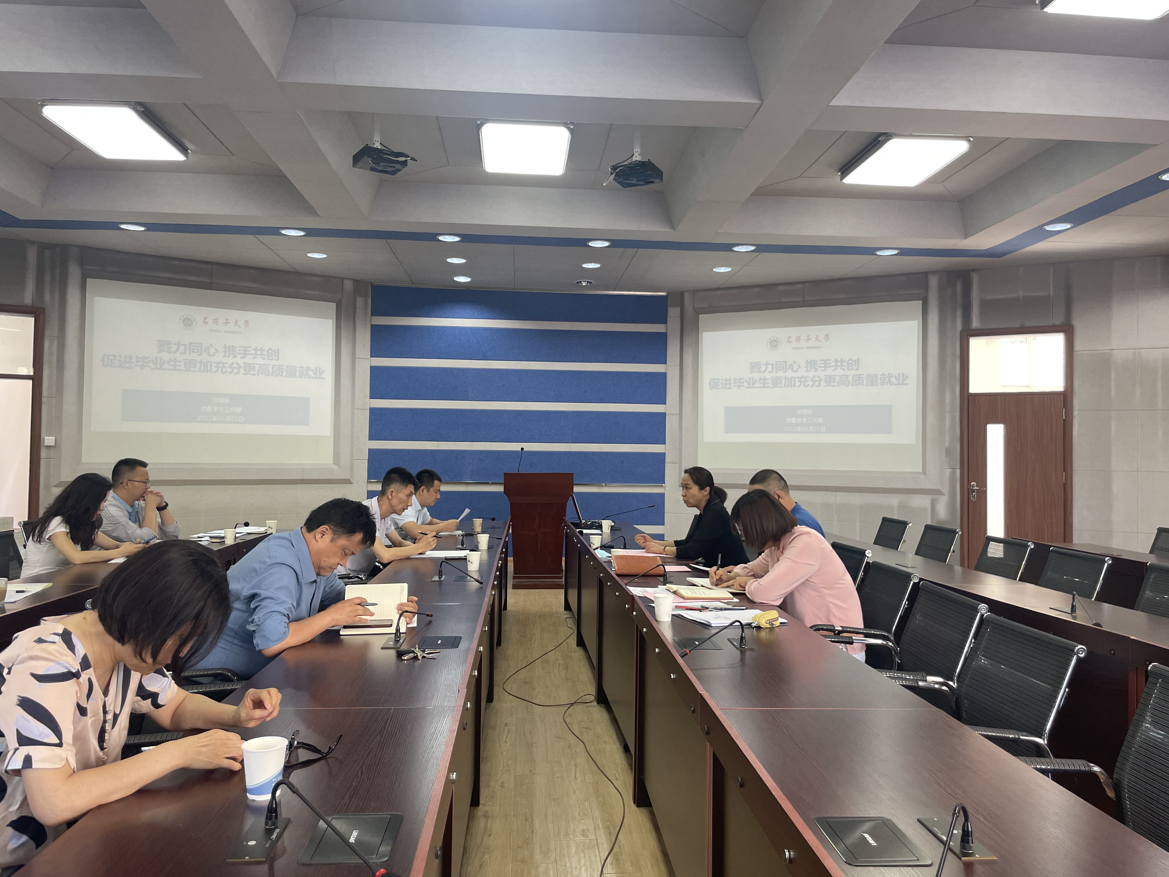 学办主任李超围绕2022届毕业生毕业去向落实情况、主要工作举措、存在问题、下一步工作安排等方面作2022届毕业生就业情况汇报。