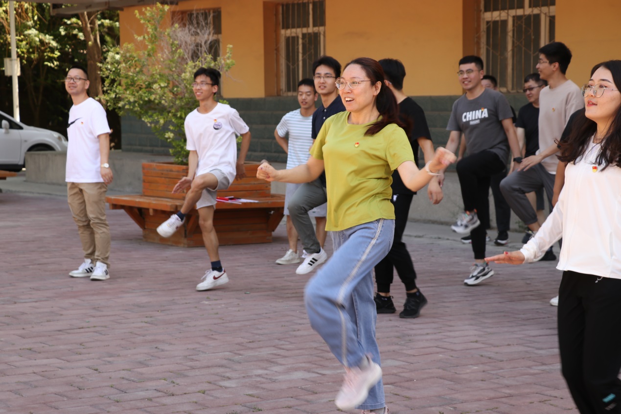 参观结束后,大家挥动国旗共同唱响《我和我的祖国》《唱支山歌给党听》等红色歌曲,表达了“强国有我,请党放心”的决心。之后,教师党员袁琳君还带领大家跳起网红毽子舞,展现师生的青春活力。