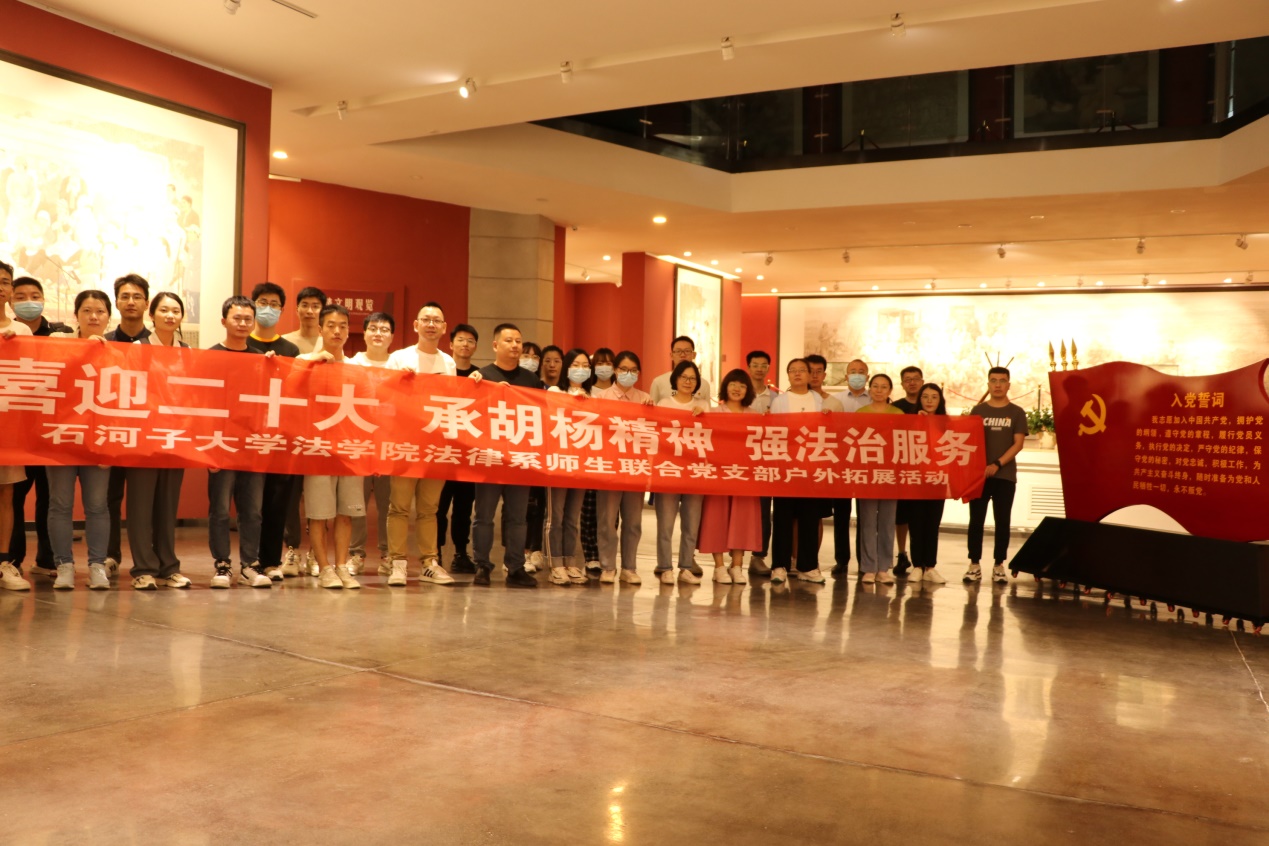 为了喜迎二十大,在中国共产党成立101周年来临之际,2022年6月18日,石河子大学法学院法律系师生联合党支部组织师生党员三十余人到石河子市红山1958军垦文旅小镇开展了军垦教育、户外拓展等党建活动。