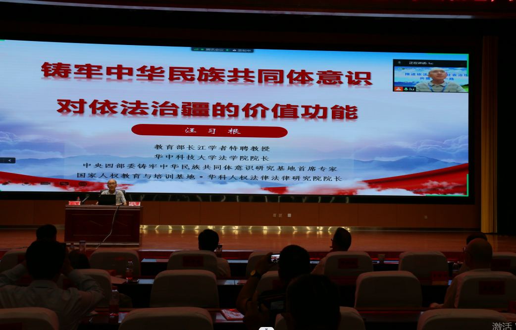 汪习根教授作“铸牢中华民族共同体意识对依法治疆的价值功能”主旨发言,汪习根从依法治疆主线出发,提出做好新形势下新疆工作,必须高举法治旗帜,弘扬法治精神,坚守法治原则,自觉在宪法和法律范围内活动,确保新疆各项工作在法治轨道上运行,积极营造良法善治的社会环境。