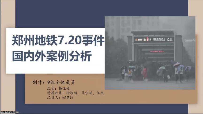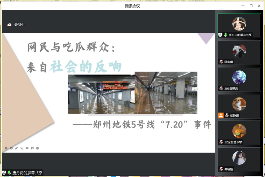 为进一步提高同学们的实践能力,巩固专业知识,顺应全面提升综合应急管理能力的时代要求,在石河子大学法学院高岗仓副院长和公管系系主任段树国老师的指导下,应急管理专业2021级、2022级通过为时两周的研究训练后,于9月18日以线上腾讯会议的方式,开展了以郑州地铁5号线“7·20”事件为研究对象的案例研讨会,会议由2021级胡静薇同学主持。