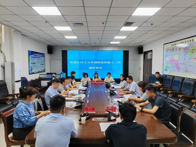兵团第十二师党委政法委常务副书记徐金贵对石河子大学法学院一行表示热烈欢迎。徐金贵介绍了十二师市域社会治理现代化工作推进情况。师党委组织部副部长梁金丽介绍了十二师立足服务型社区党组织建设,推动党建引领基层治理提质增效的做法。师农业农村局副局长裘越娥介绍了十二师乡村产业发展的情况。徐金贵表示,兵团政法委加强与石河子大学法学院的合作交流,将有助于提升师市社会治理能力创新与治理体系建设。通过跨界合作的新模式、深度调研的新探索将加快共研兵团社会治理创新的新路径,将进一步凝聚合作共识,加大双方开展理论与实践研究、专业人才交流等工作的支持力度。