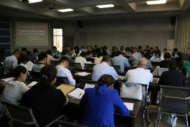 9月13日,法学院第四届教职工代表大会暨工会会员大会第三次会议在会4-119举行,会议由院党委副书记、工会主持冯洁主持。