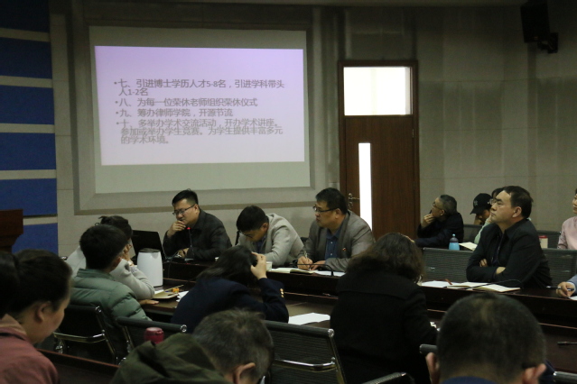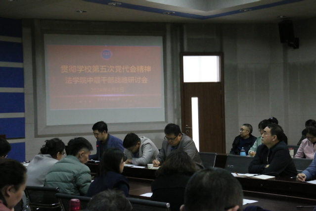 4月3日,法学院召开学习贯彻校第五次党代会精神学院中层干部战略研讨会。在3月6日学院召开了学习贯彻校第五次党代会精神战略研讨会,会上校党委常委、纪委书记牛新民作了讲话,院党委书记、副院长王政爱就工作进行了安排。本次各系、办主任结合学习贯彻校第五次党代会精神、校六届四次“双代会”精神”和院领导工作安排,突出学院发展、突出量化指标提出最想办的十件实事。