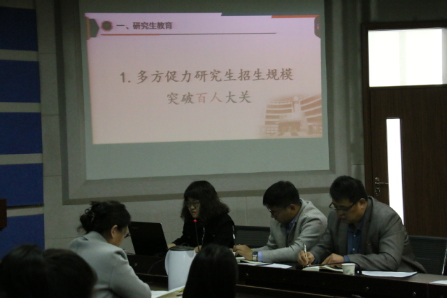学院各系、办主任结合工作就贯彻落实抓好的“十件”实事进行汇报。