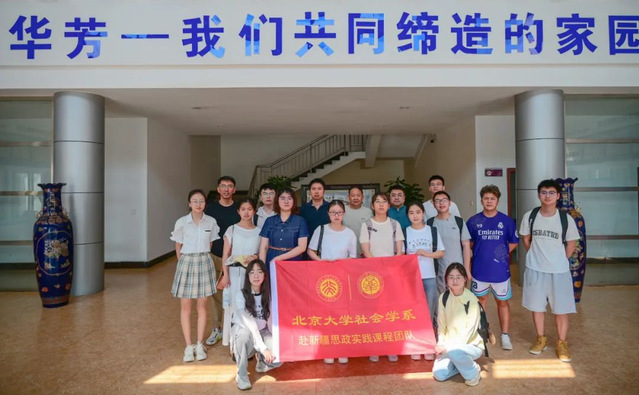 6月29日,北京大学中央四部委铸牢中华民族共同体意识研究基地大学生暑期思政实践团在老师张哲和助教薛雯静的带领下,来到石河子市进行调研,石河子大学铸牢基地陈潘老师全程陪同。