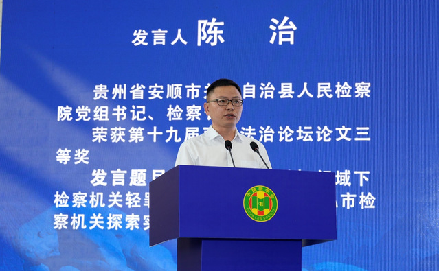 三等奖获得者贵州省安顺市关岭自治县人民检察院党组书记、检察长陈治同志以《“枫桥经验”视域下检察机关轻罪治理路径探索——以A市检察机关探索实践为延伸视角》为题发言。他认为“枫桥经验”是中国特色的基层先进治理经验,给新时代检察机关探索轻罪治理提供了新的价值导向。检察机关应依托新时代“枫桥经验”,积极探索轻罪治理现代化“枫桥样板”,不断延伸检察职能推进基层治理体系现代化。轻罪治理实践探索中存在对“轻罪治理”思想认识不足、非羁押强制措施导致的不可控性因素依然存在、轻罪“犯罪标签化”矛盾突出、构建轻罪治理体系力量较为薄弱等问题,可从转变对“轻罪治理”的固化思维定式、强化“数字”赋能非羁押监管、建立轻罪前科记录分级消灭制度、构建“轻罪治理”多元矛盾化解协作平台等方面进行探索,进而提升轻罪治理新质效。