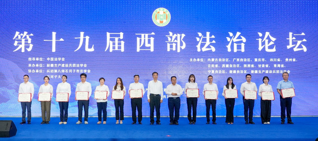 西部法治论坛创办自2006年,是中国法学会七大区域法治论坛之一,是推动和加强西部地区法学法律界交流和合作的重要学术平台。本次论坛共征集学术论文4034篇,评选获奖论文119篇,其中,一等奖13篇、二等奖34篇、三等奖72篇,另评选26家单位获优秀组织奖。大会对第十九届西部法治论坛获奖论文作者代表和优秀组织单位代表进行了表彰。