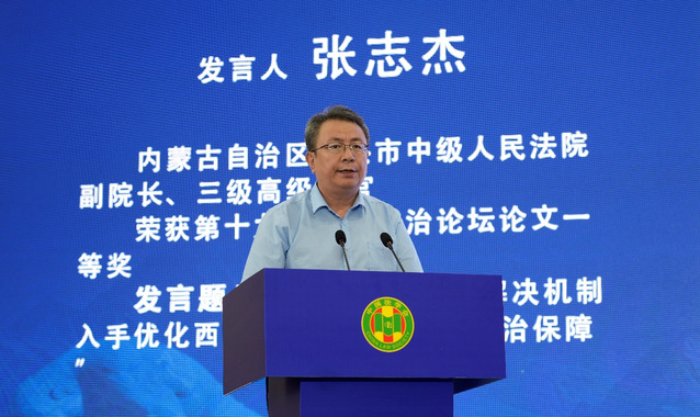 一等奖获得者内蒙古自治区包头市中级人民法院副院长、三级高级法官张志杰同志以《从多元争议解决机制入手优化西部地区营商环境的法治保障》为题发言。他认为多元争议解决机制对于西部地区营商环境法治化具有重要意义,指出多元争议解决机制建设是促进法治化的重要途径,有利于增强人民安全感。提出了包括树立新时代法律理念、建立一站式争议解决平台、完善法律制度在内的对策建议,以保障西部地区营商环境的法治化。