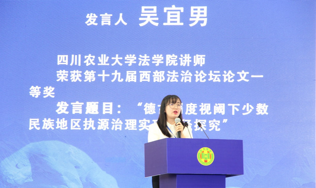 一等奖获得者四川农业大学法学院讲师吴宜男同志以《德古制度视阈下少数民族地区执源治理实现路径探究》为题发言。她认为执源治理作为一种综合性的治理策略,核心在于从源头上预防和化解矛盾纠纷。加强执源治理,从源头上减少人民法院执行案件增量,是从源头“切实解决执行难”问题的应有之义。彝族习惯法,作为中华法律文化中的关键元素,深深扎根于凉山这片富有特色的民族区域,其产生与发展离不开彝族独特的风俗习惯这一肥沃土壤。在凉山,德古制度凭借其卓越的调解功能,历经数百年的传承,已然成为该地区的文化瑰宝。鉴于此,有必要在凉山彝族地区深入挖掘和发挥德古制度的积极作用,并探索其与执源治理制度的有机结合。这种融合不仅能够产生强大的协同效应,还将显著提升凉山法治建设的水平,确保该区域社会的长期和谐稳定。