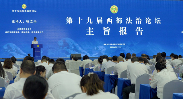 2024年7月31日,第十九届西部法治论坛在第八师石河子市举行,本届论坛主题是“全面贯彻习近平法治思想,为谱写中国式现代化西部新篇章贡献法治力量”。论坛由中国法学会指导,兵团、内蒙古、广西等西部十三个省区市法学会共同主办,兵团法学会承办,第八师石河子市法学会、石河子大学协办。中国法学会党组成员、副会长兼秘书长张鸣起,新疆维吾尔自治区政府副主席,兵团党委副书记、司令员薛斌出席开幕式并致辞,兵团党委常委,政法委书记朱雪冰出席开幕式,兵团法学会会长张文全主持开幕式。